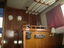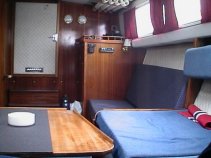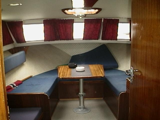 Innredningen er av teak med stort vaskerom/toalett. Salong har delvis nytrukkete puter, og det er stor plass inne og ute på dekk. Bredda er ca.3,30m.